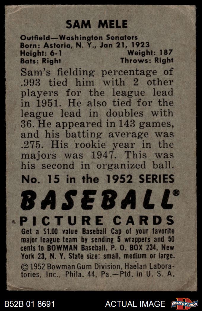 1952 Bowman Baseball Cards (843 available)1952 Bowman Senators (127 available)