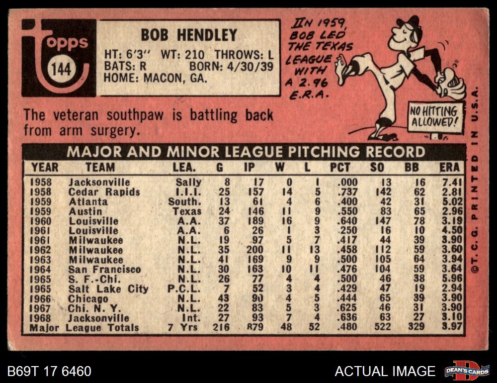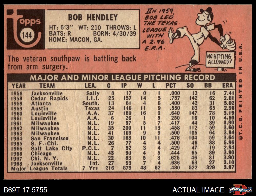 1969 Topps #144 Bob Hendley 2 - GOOD