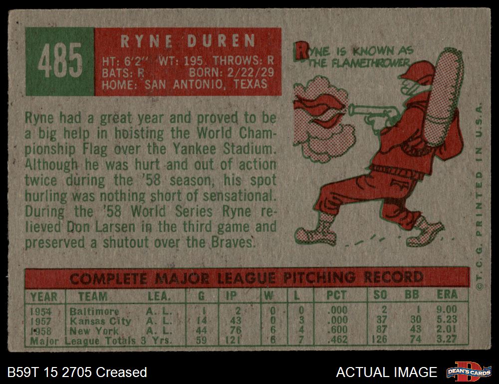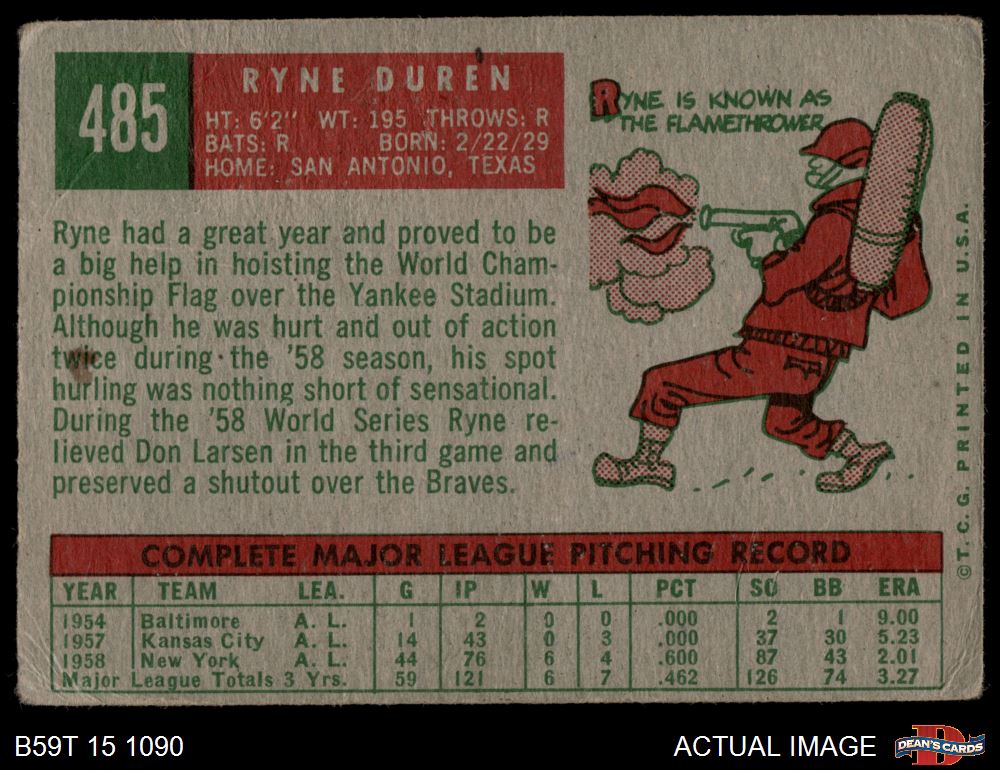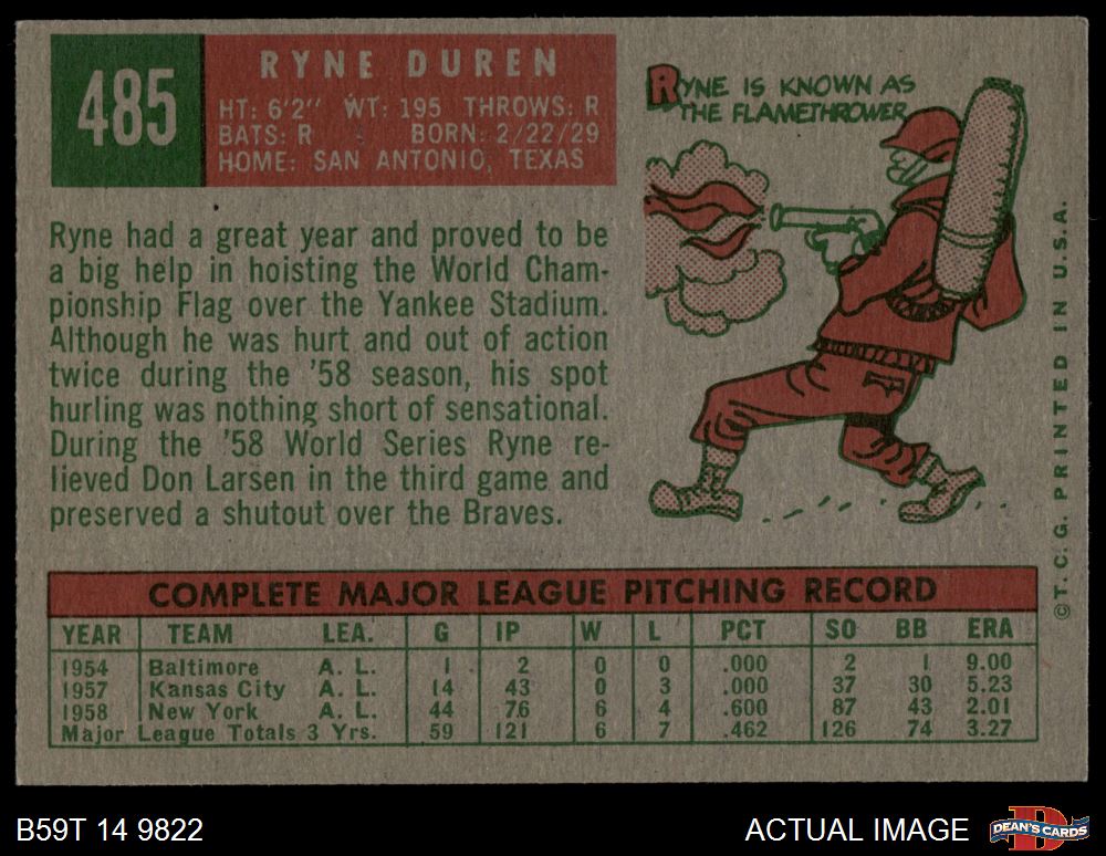 1959 Topps #485 Ryne Duren