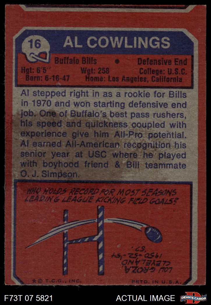 1973 Topps #16 Al Cowlings 1.5 - FAIR
