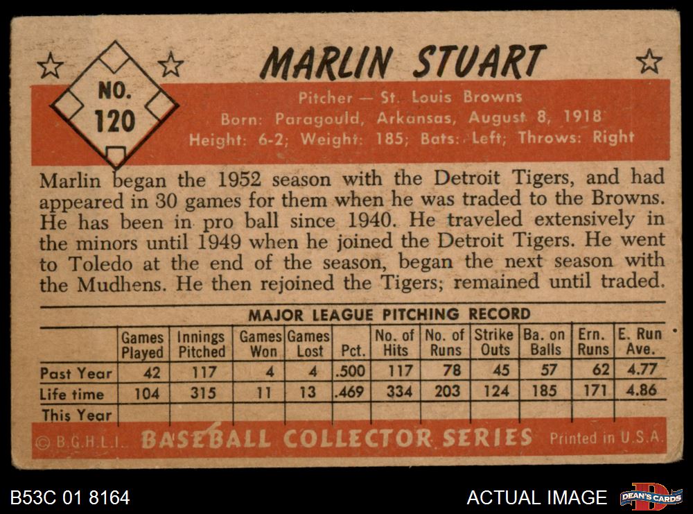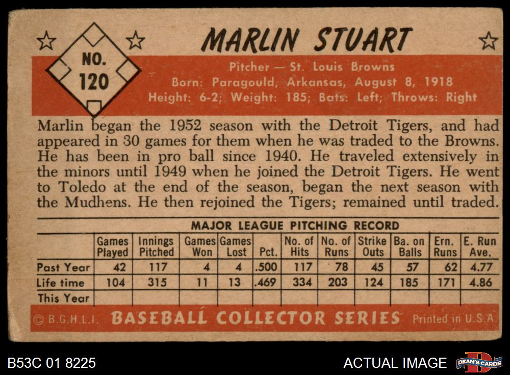 1953 Bowman #120 Marlin Stuart 1.5 - FAIR
