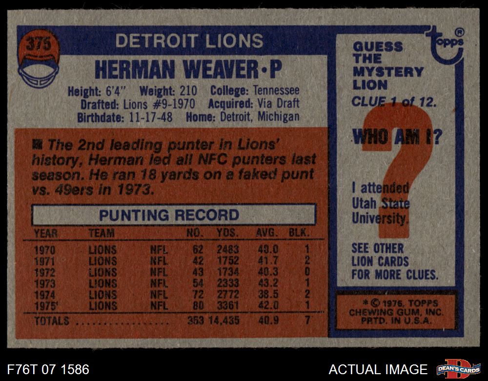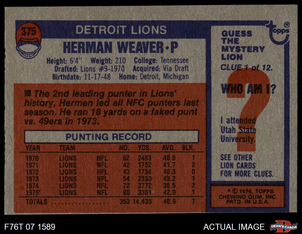 1976 Topps #375 Herman Weaver