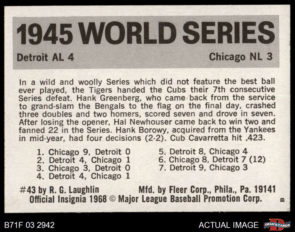 1971 Fleer World Series #43 - Hank Greenberg 1945 Tigers / Cubs 8 - NM/MT