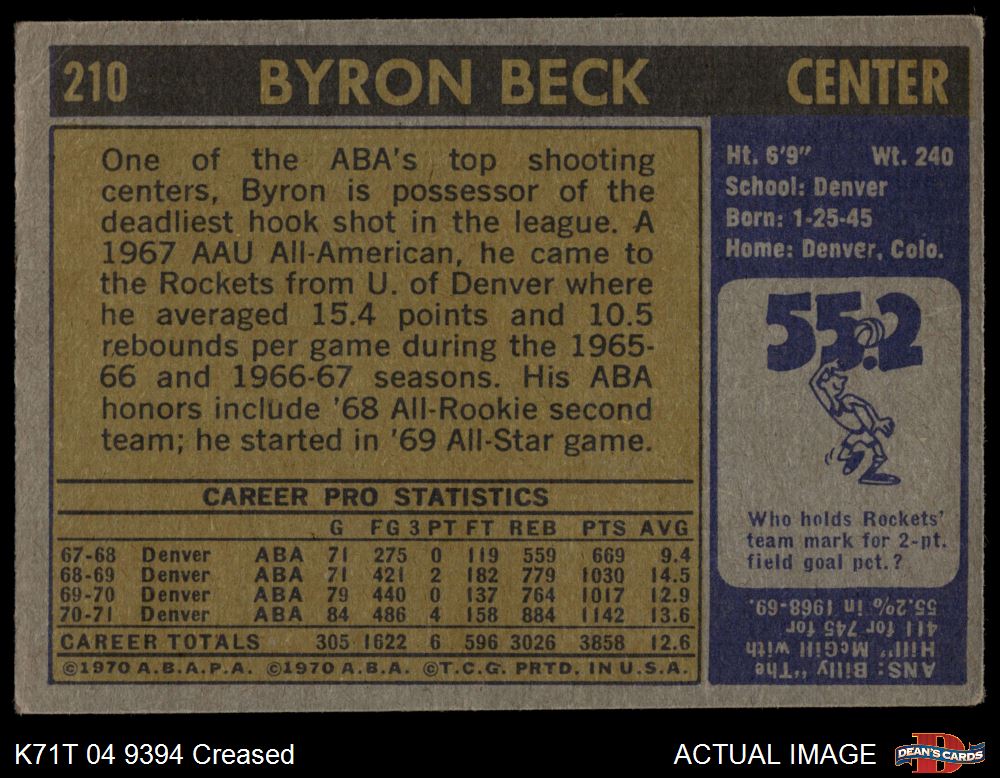 1971 Topps #210 Byron Beck 2 - GOOD