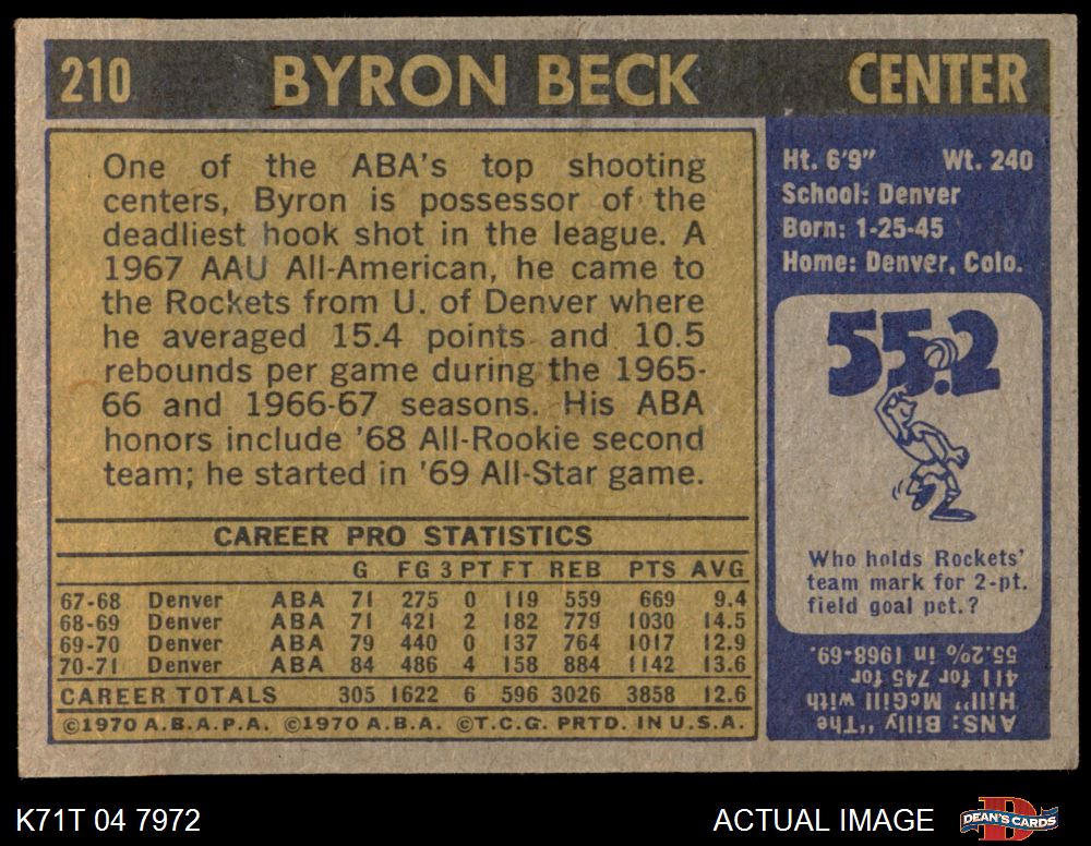 1971 Topps #210 Byron Beck 6 - EX/MT