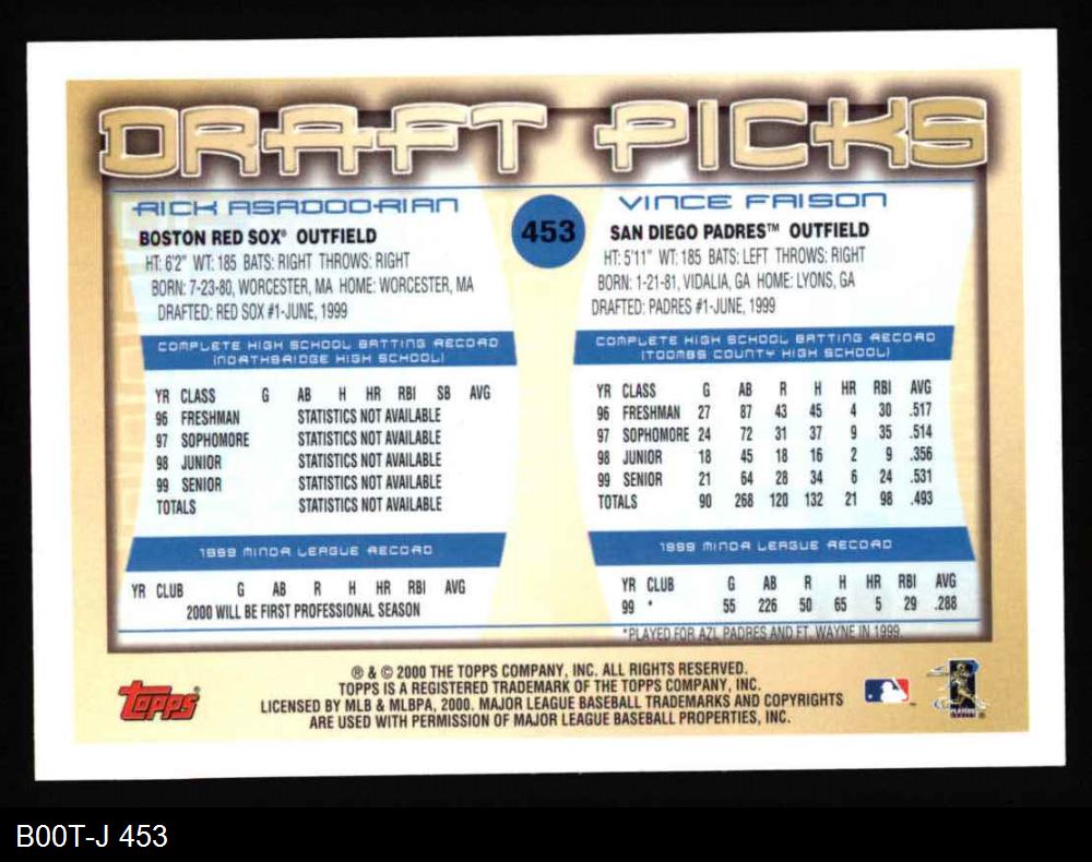 2000 Topps #453 - Rick Asadoorian / Vince Faison Draft Picks 8 - NM/MT
