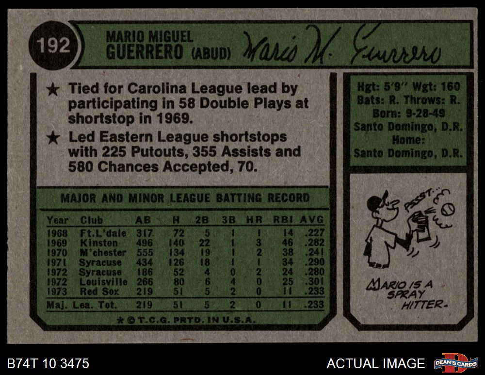1974 Topps #192 Mario Guerrero 6.5 - EX/MT+