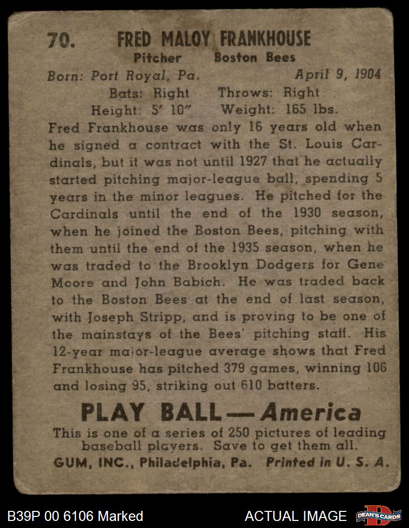 1939 Play Ball #70 Fred Frankhouse 1 - POOR