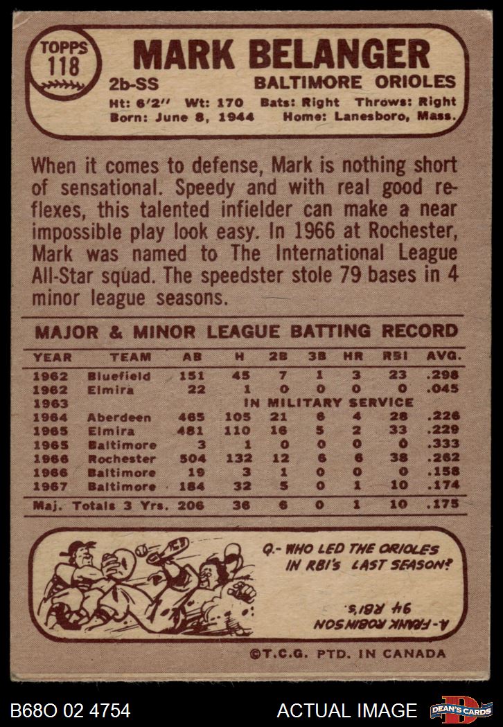 1968 O-Pee-Chee #118 Mark Belanger 4 - VG/EX
