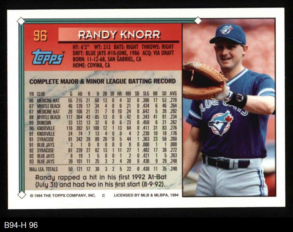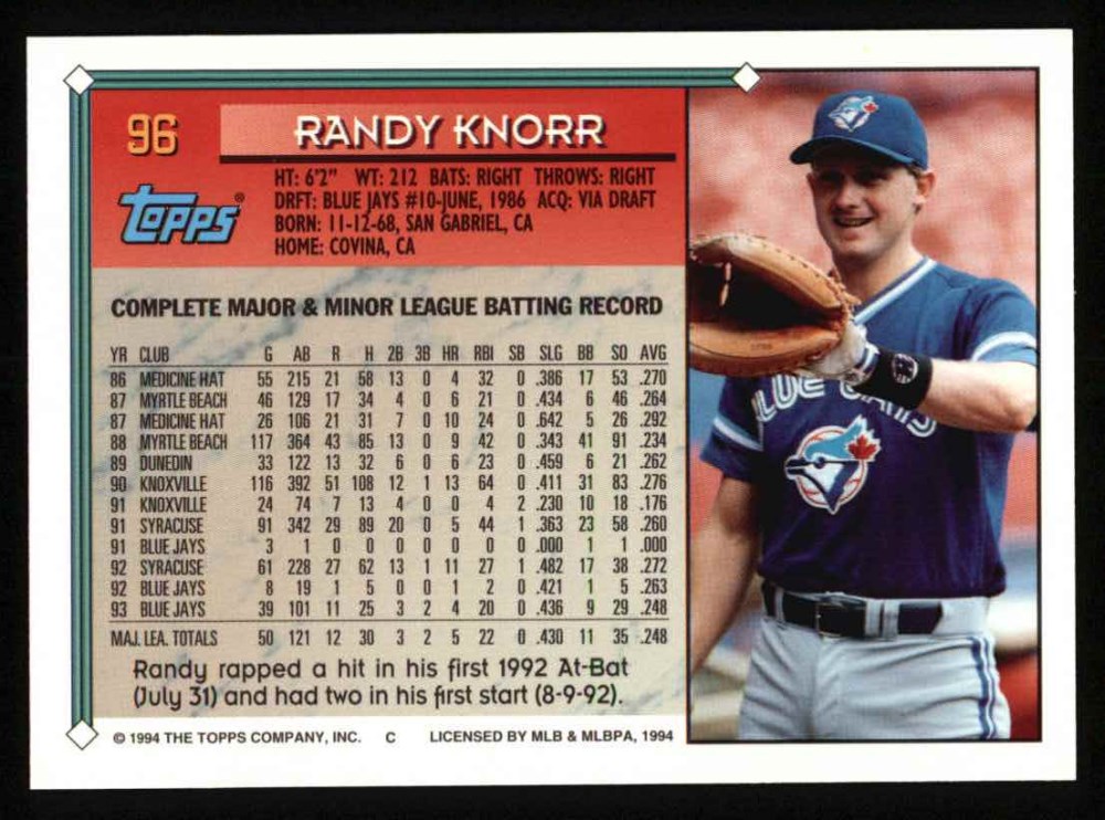 1994 Topps #96 Randy Knorr 8 - NM/MT