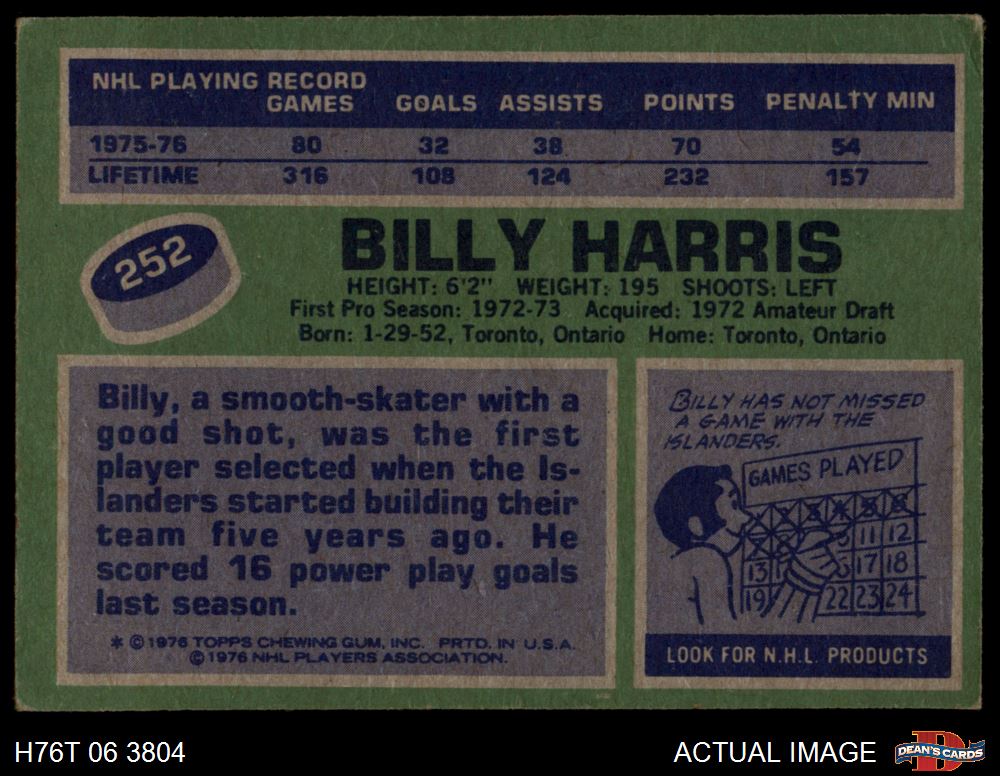 1976 Topps #252 Billy Harris