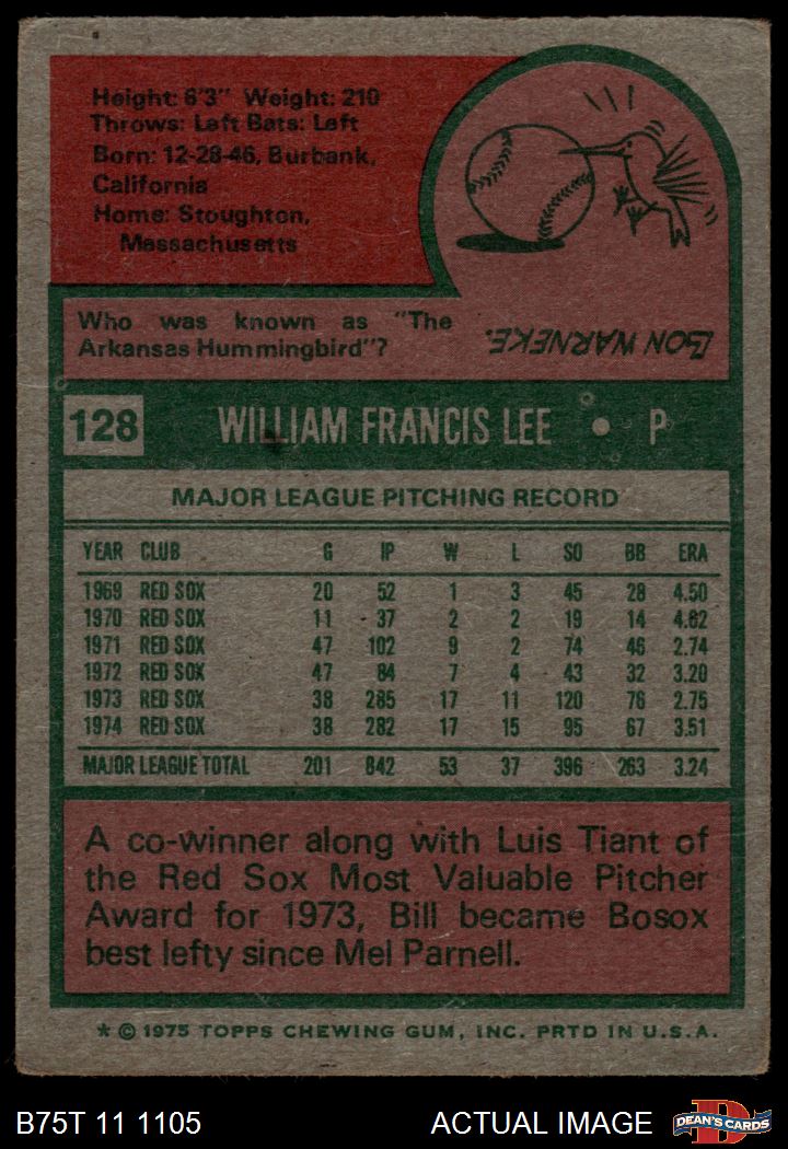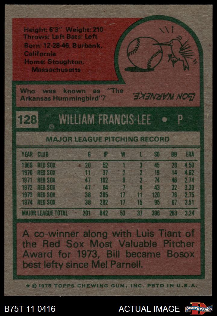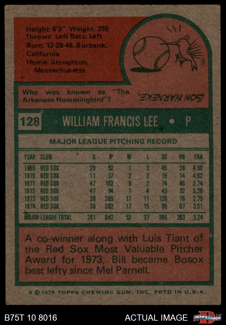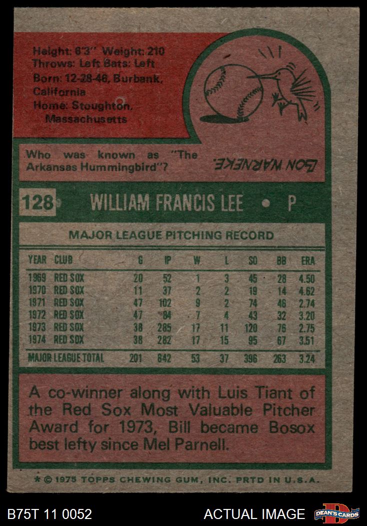 1975 Topps #128 Bill Lee