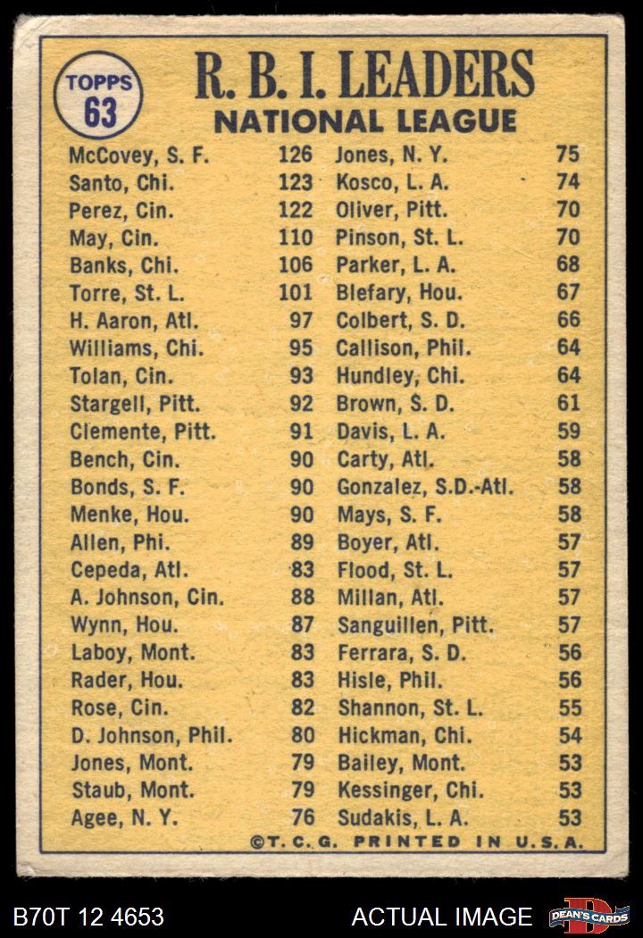 1970 Topps #63 - Willie McCovey / Tony Perez / Ron Santo NL RBI Leaders 1.5 - FAIR
