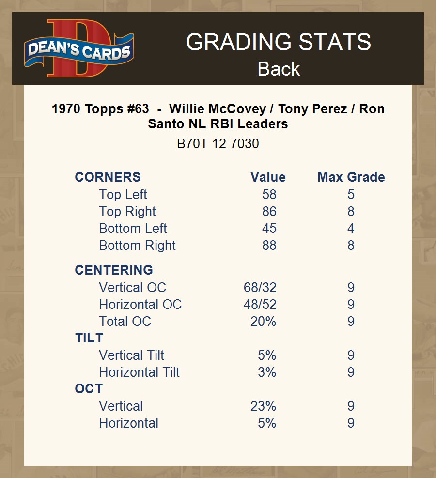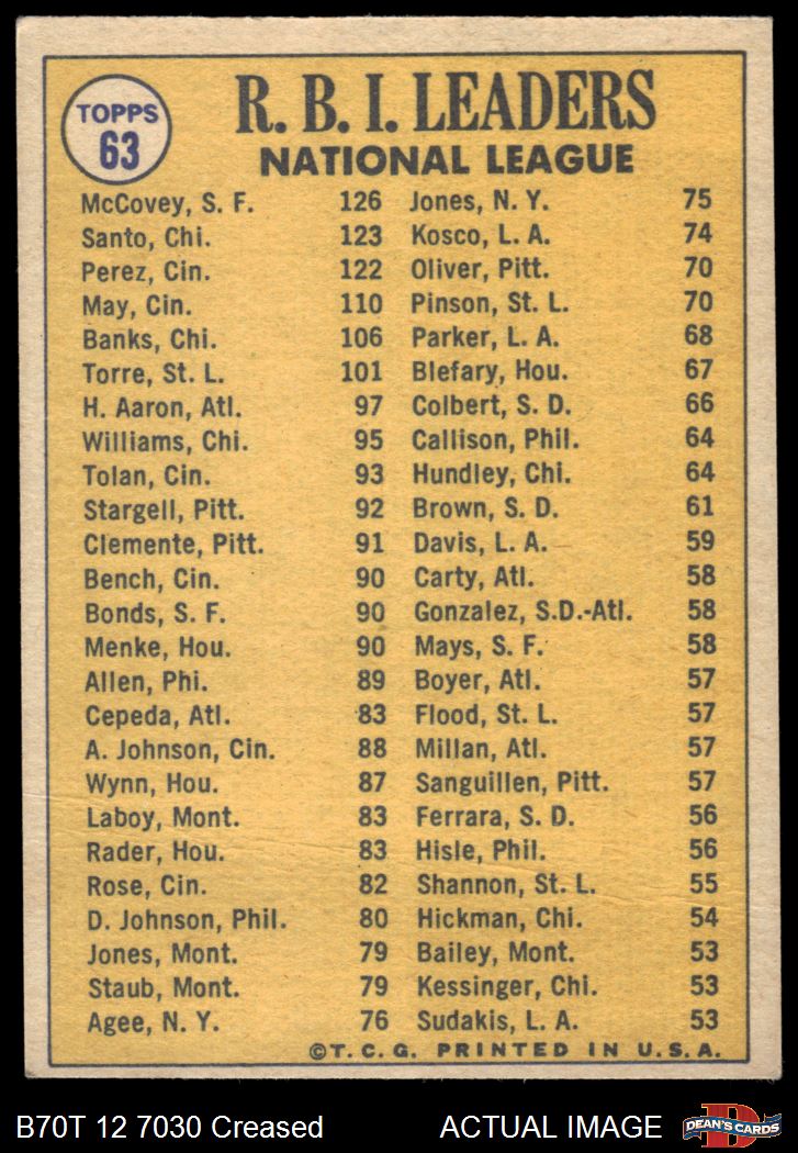 1970 Topps #63 - Willie McCovey / Tony Perez / Ron Santo NL RBI Leaders 2 - GOOD