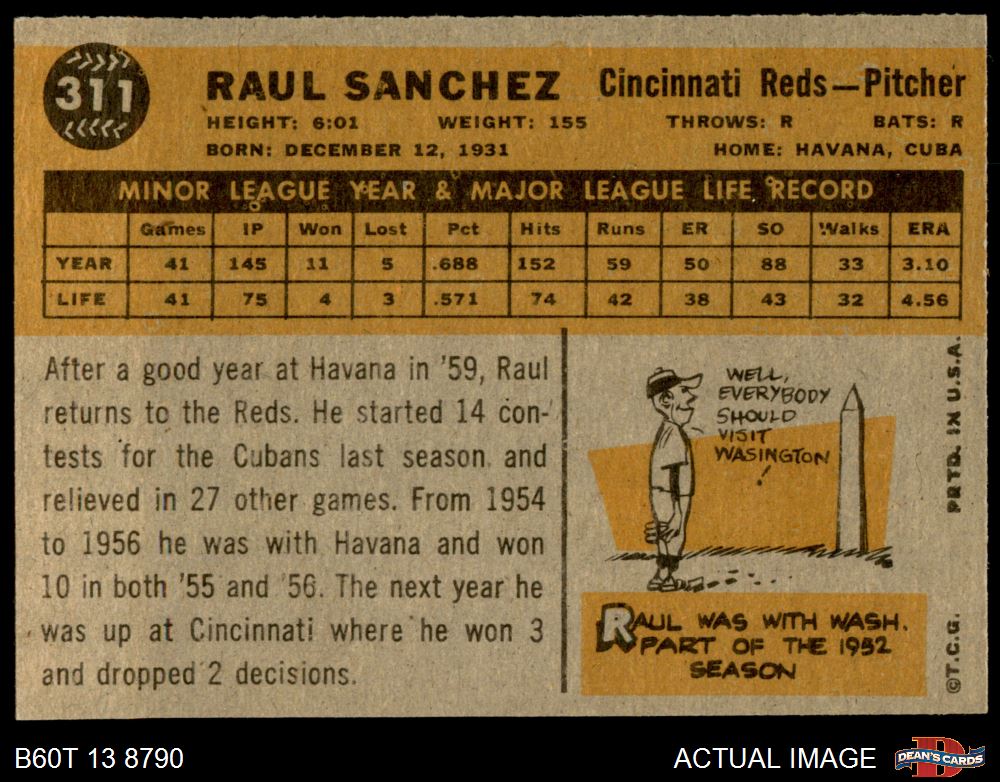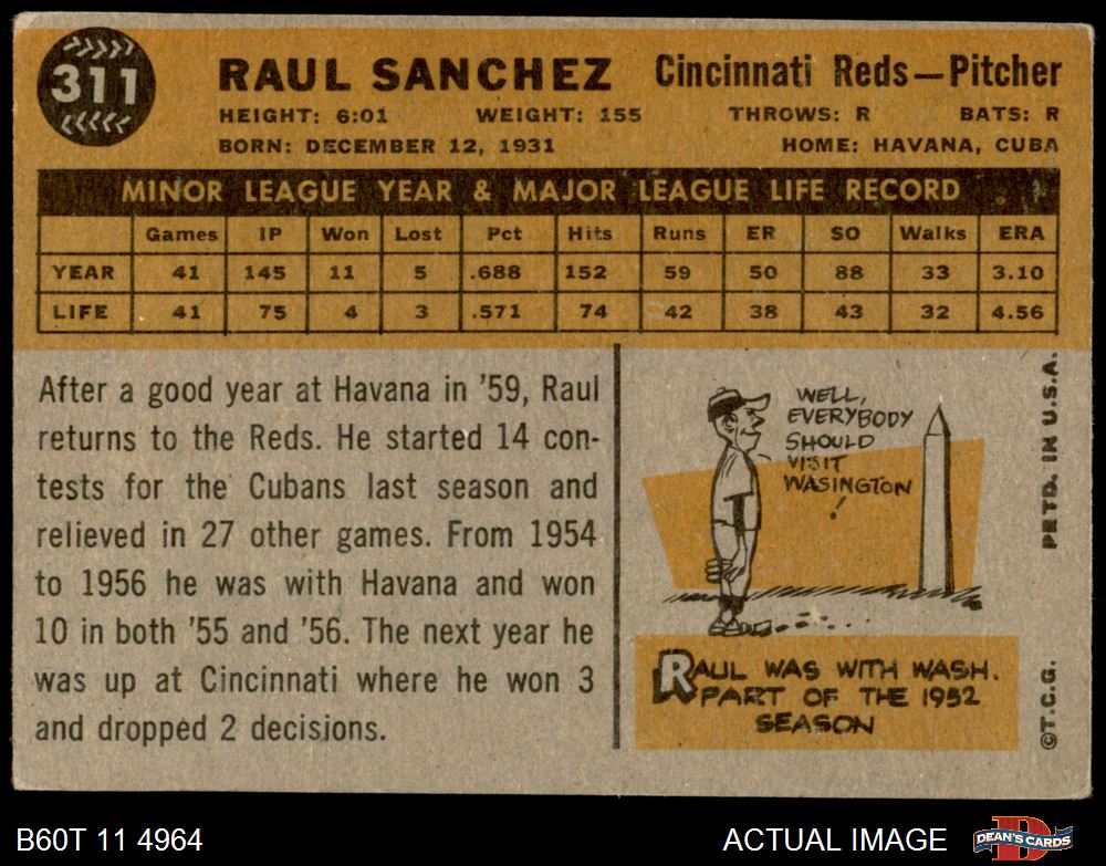 1960 Topps #311 Raul Sanchez 4 - VG/EX