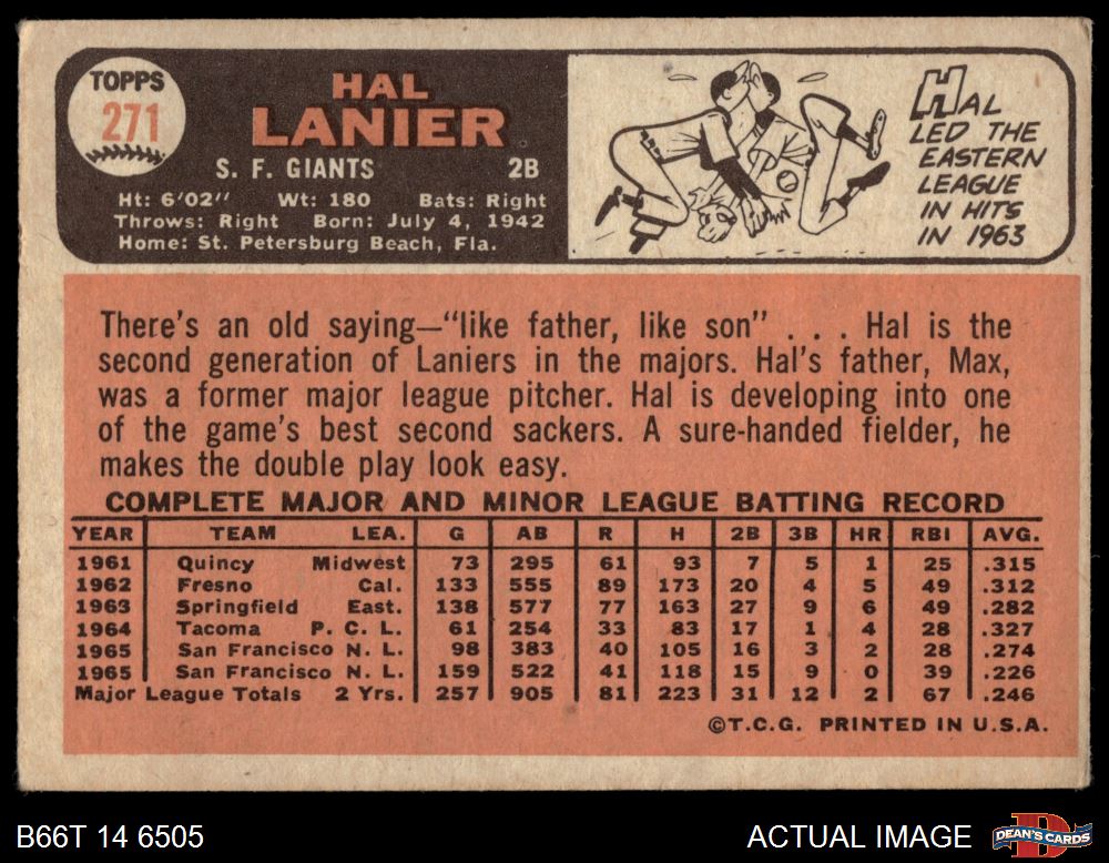 1966 Topps #271 Hal Lanier