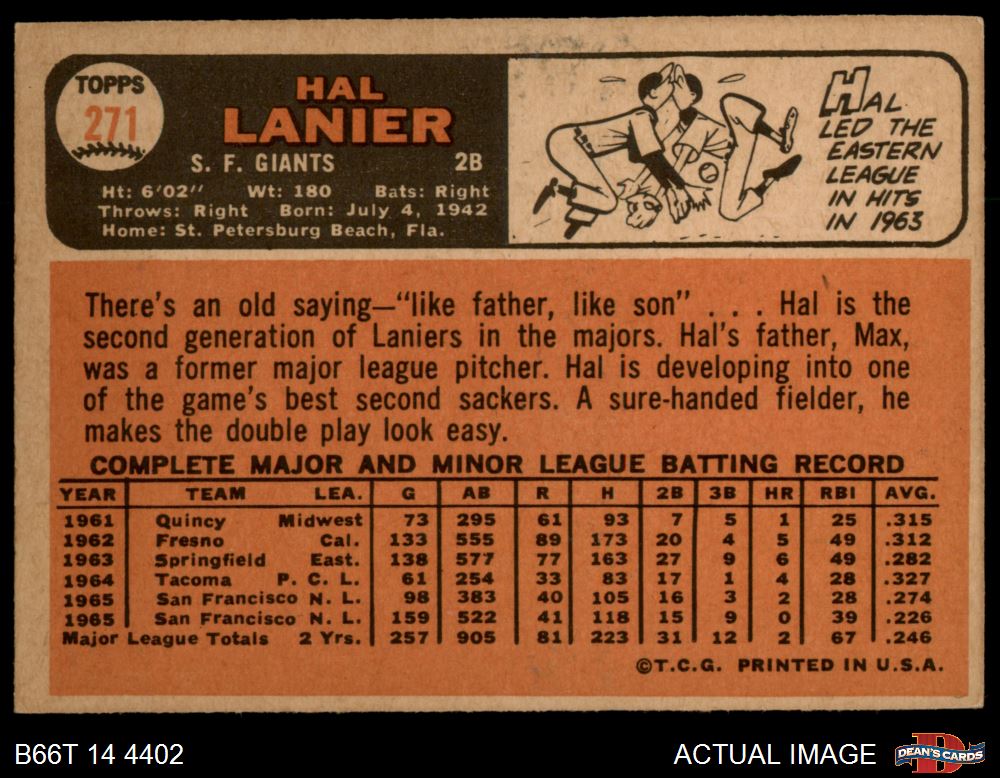 1966 Topps #271 Hal Lanier 3 - VG