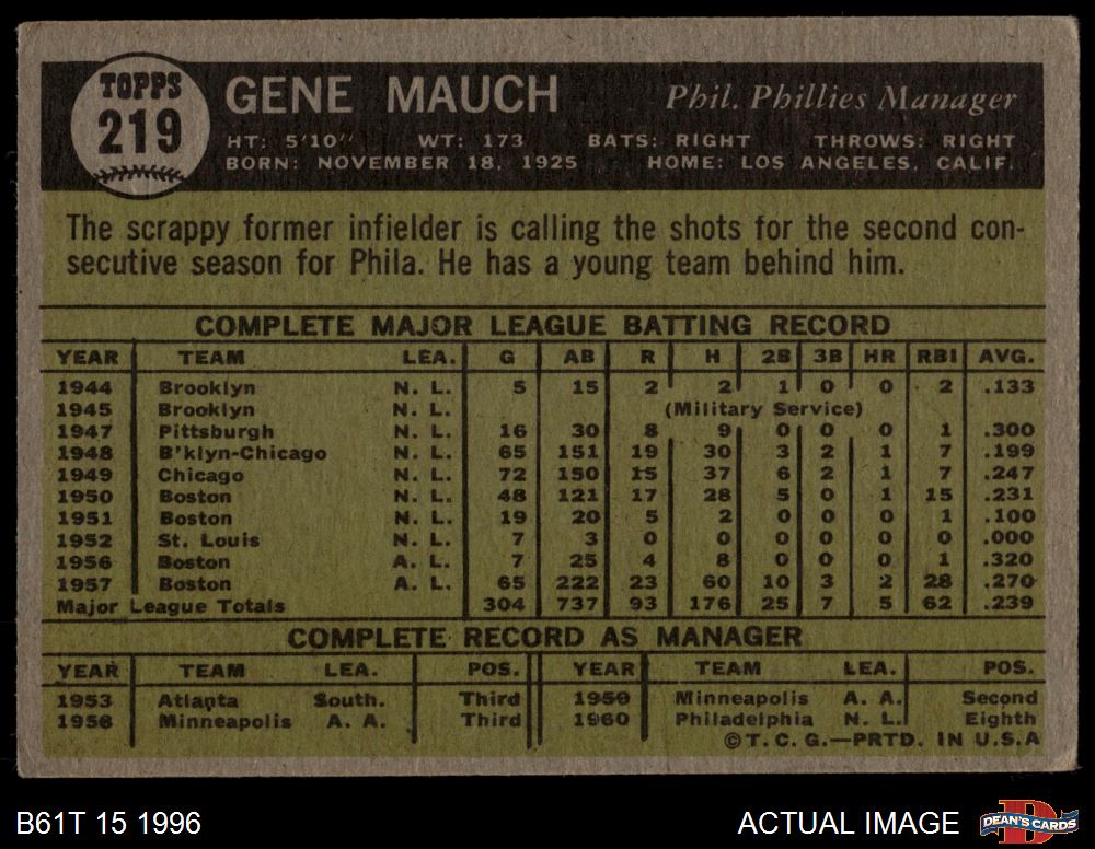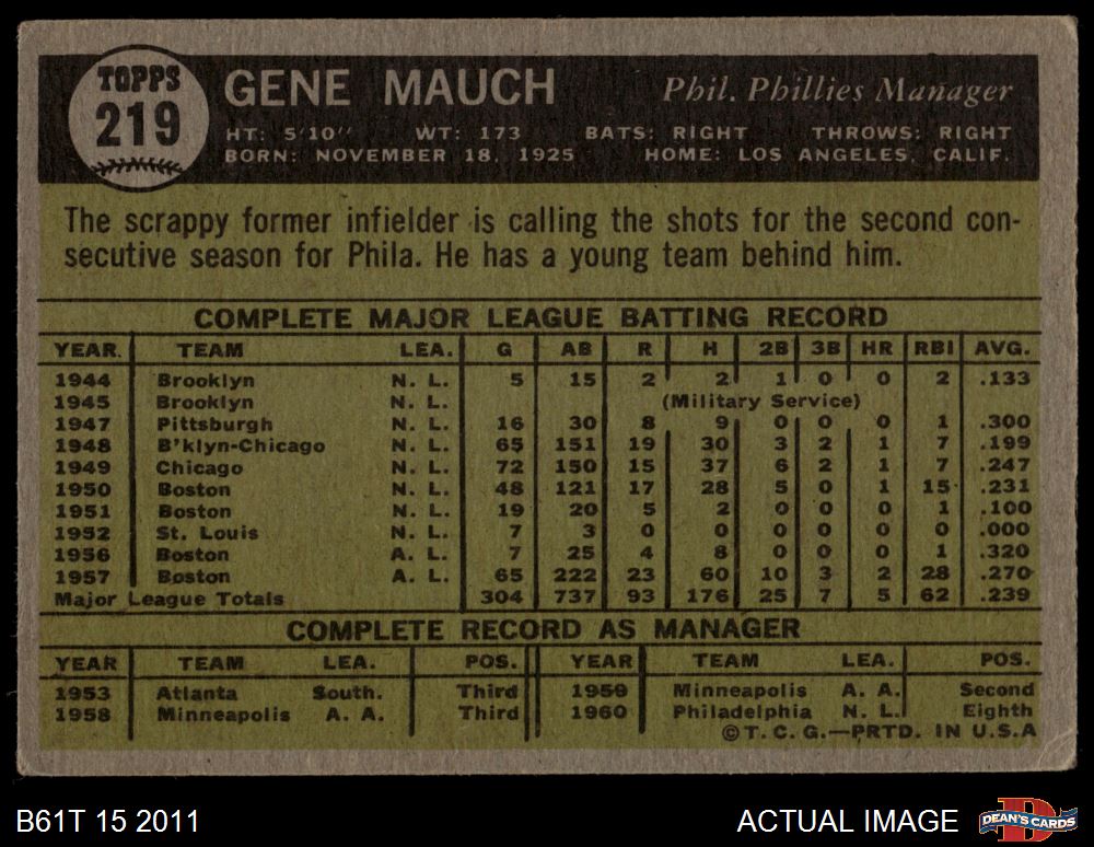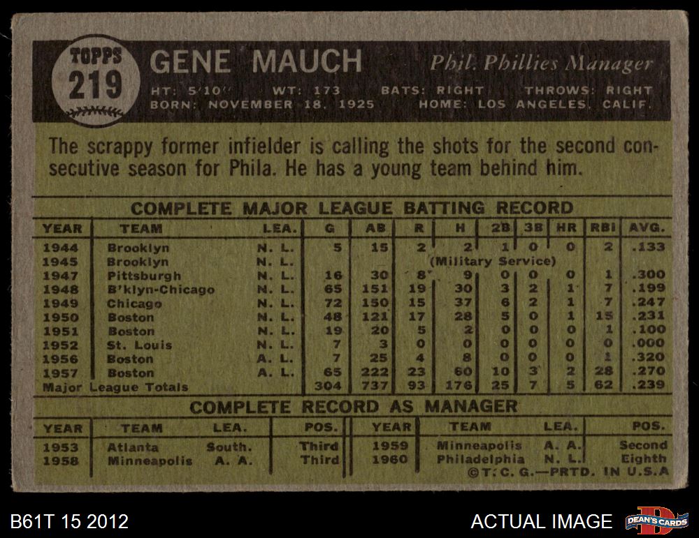 1961 Topps #219 Gene Mauch 2 - GOOD
