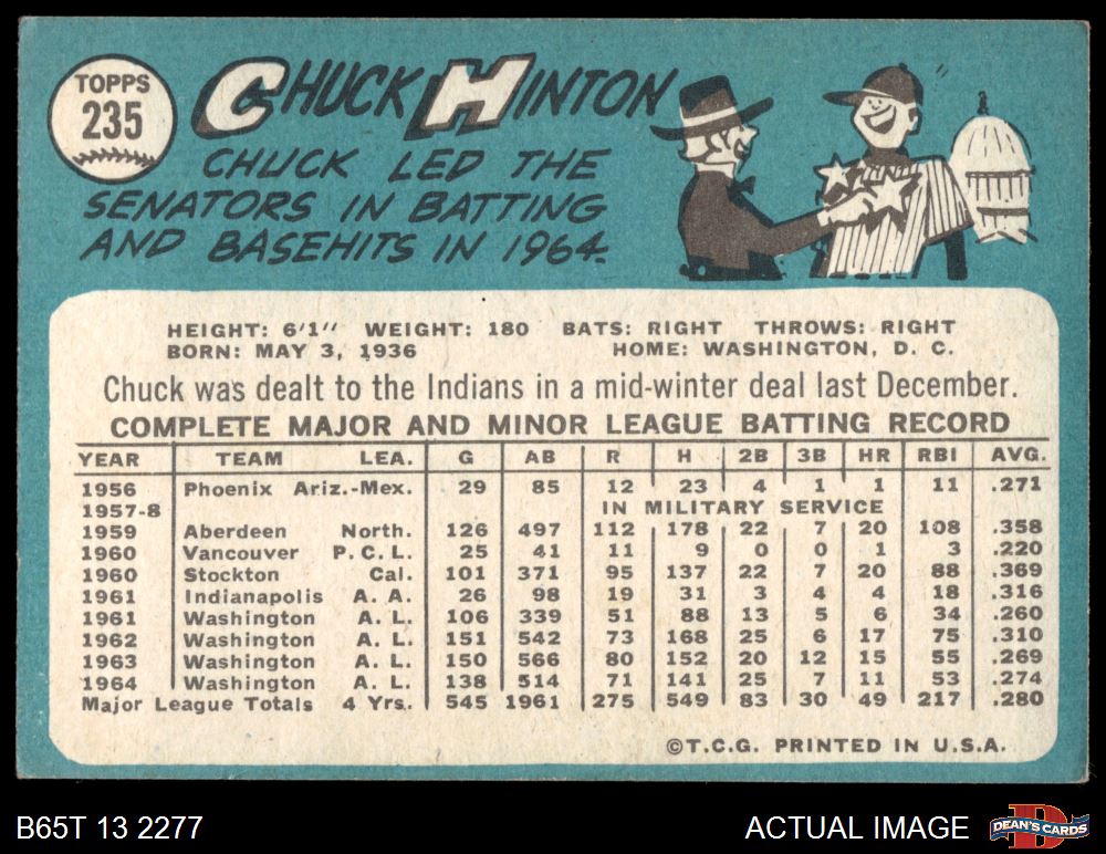 1965 Topps #235 Chuck Hinton 3 - VG
