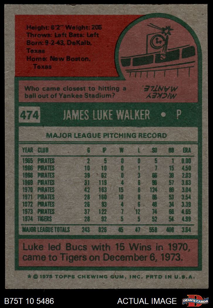 1975 Topps #474 Luke Walker 7.5 - NM+