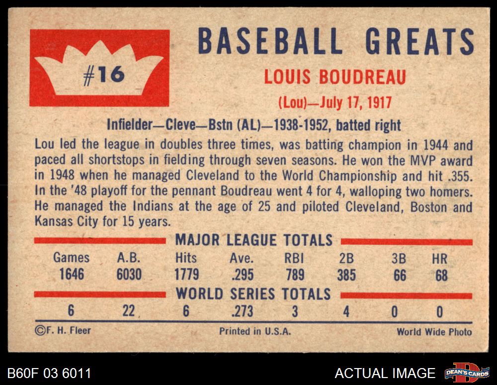 1960 Fleer #16 Lou Boudreau 3.5 - VG+