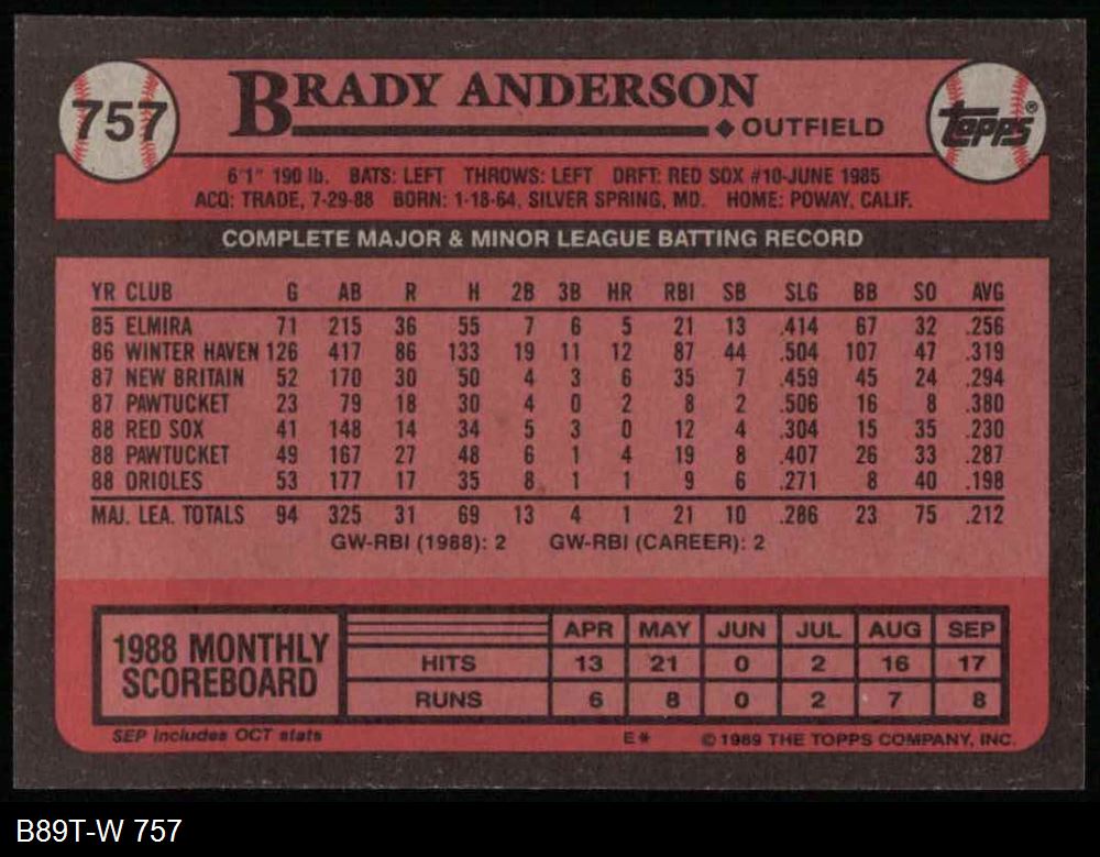 1989 Topps #757 Brady Anderson