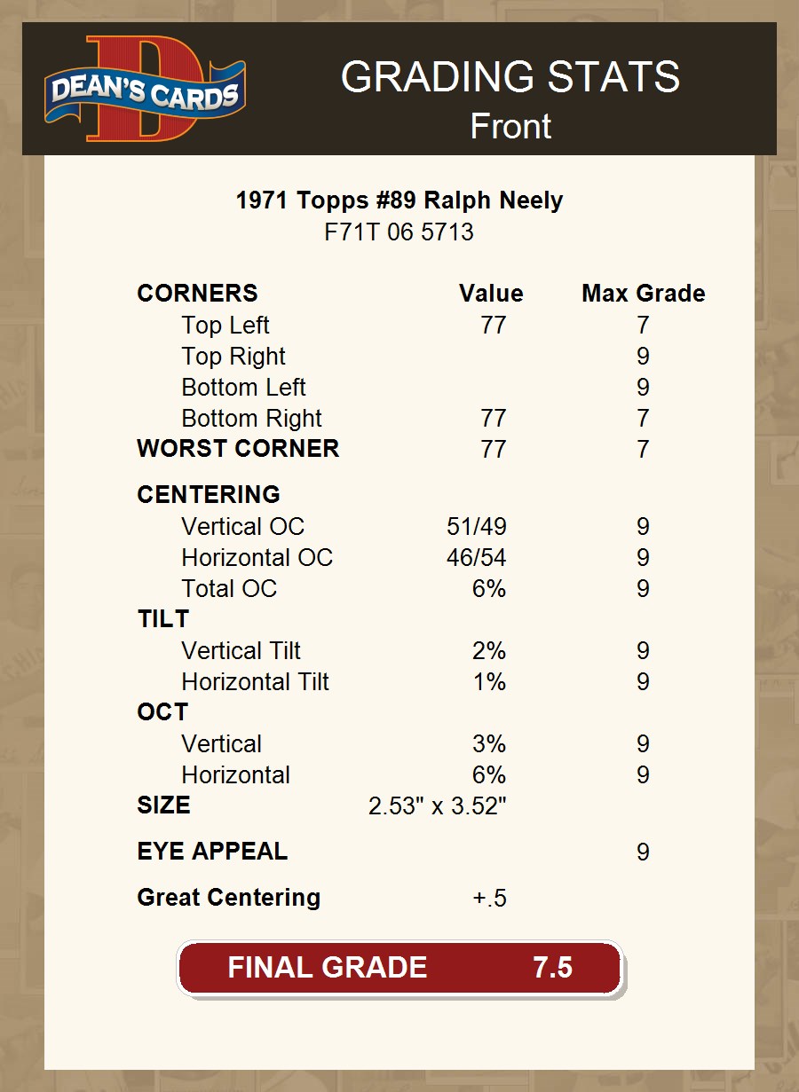1971 Topps #89 Ralph Neely 7.5 - NM+