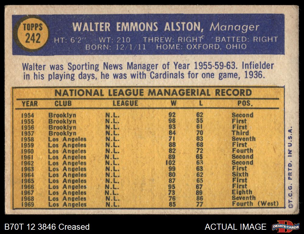 1970 Topps #242 Walter Alston 2 - GOOD