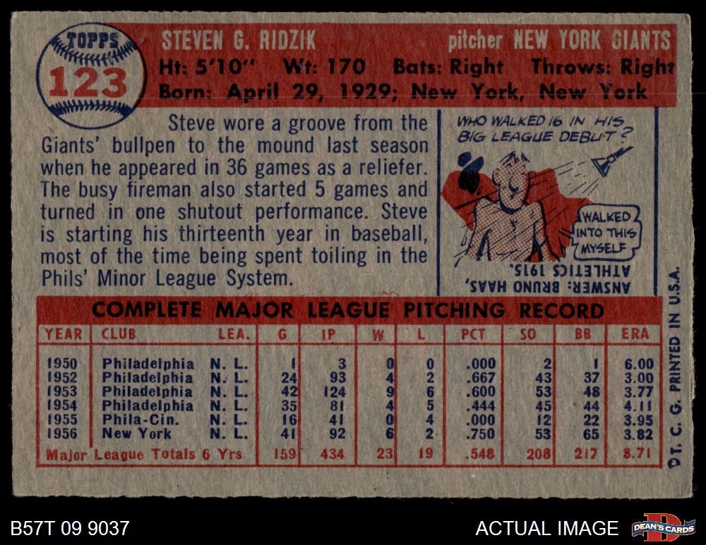 1957 Topps #123 Steve Ridzik 4 - VG/EX