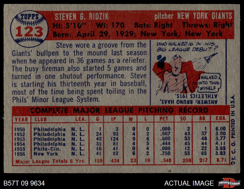 1957 Topps #123 Steve Ridzik 4.5 - VG/EX+