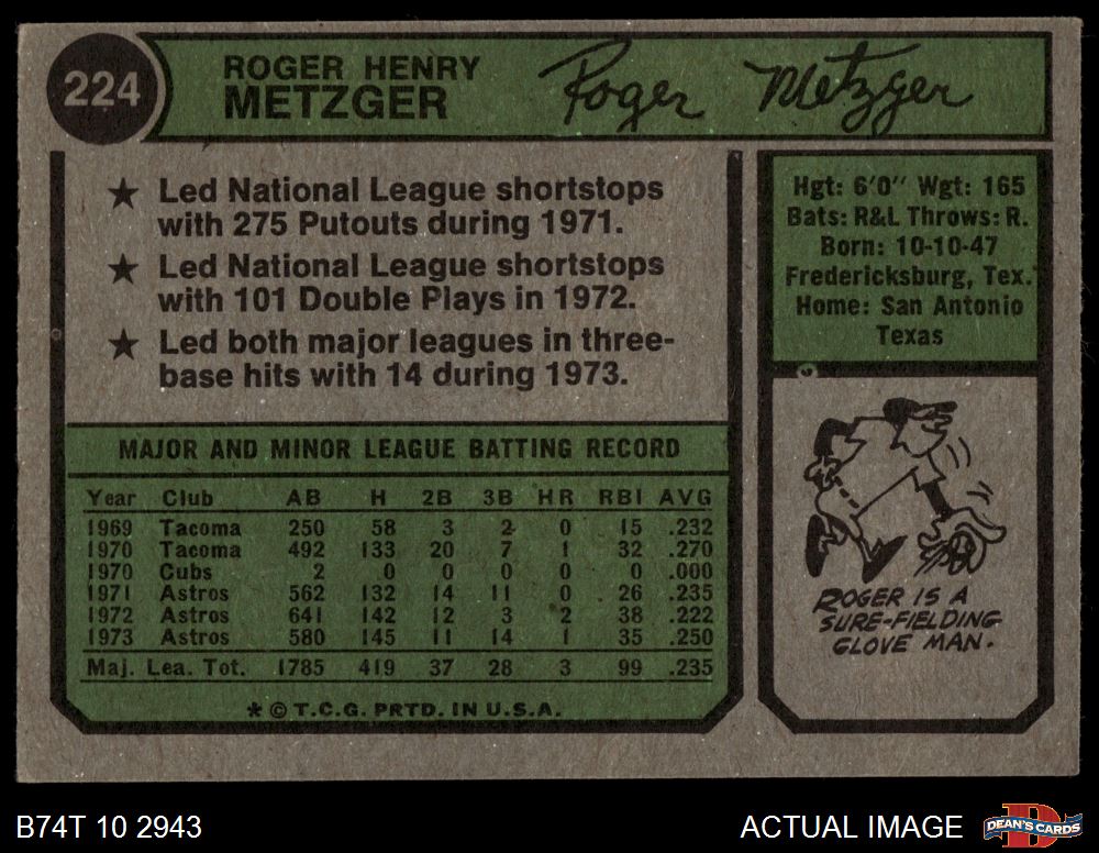 1974 Topps #224 Roger Metzger 4 - VG/EX