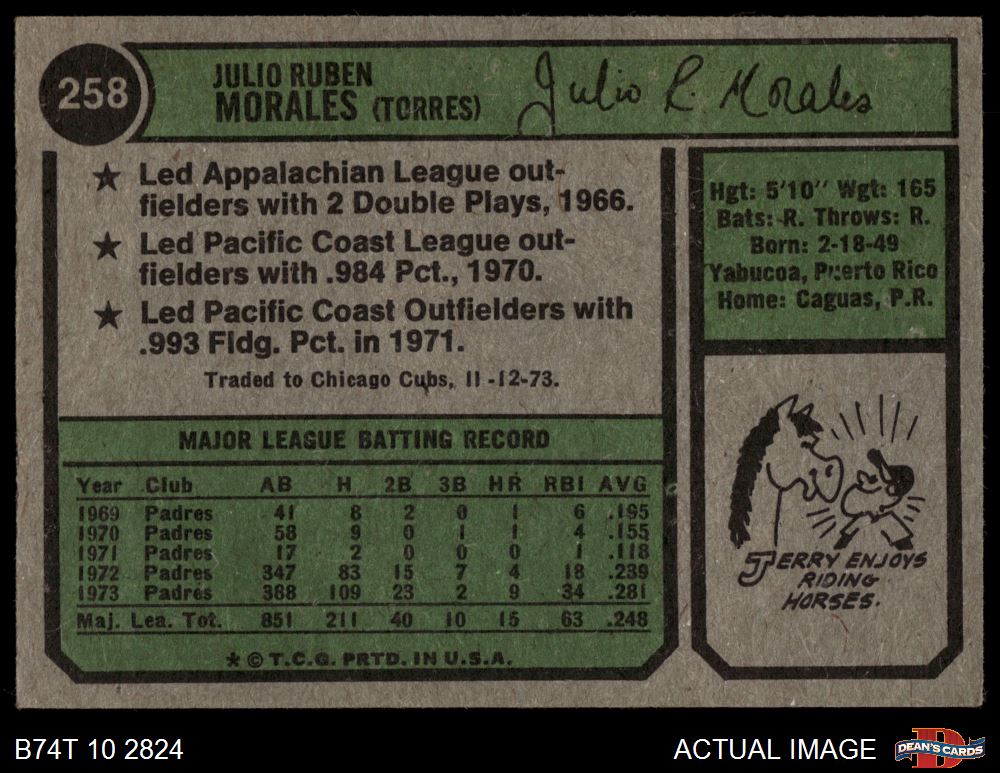 1974 Topps #258 Jerry Morales 4 - VG/EX