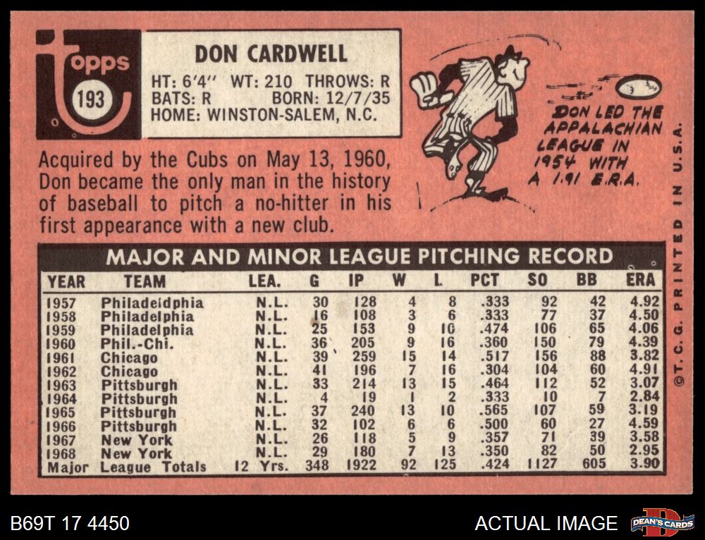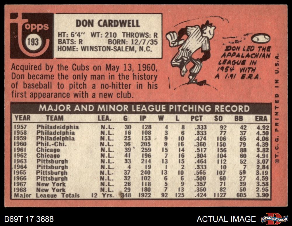 1969 Topps #193 Don Cardwell 4 - VG/EX