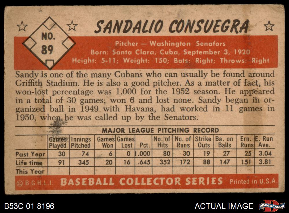 1953 Bowman #89 Sandy Consuegra 2 - GOOD