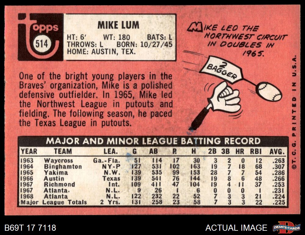 1969 Topps #514 Mike Lum 3 - VG