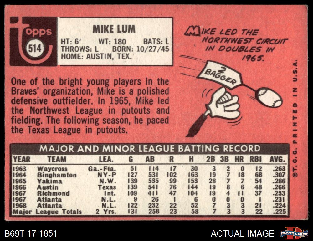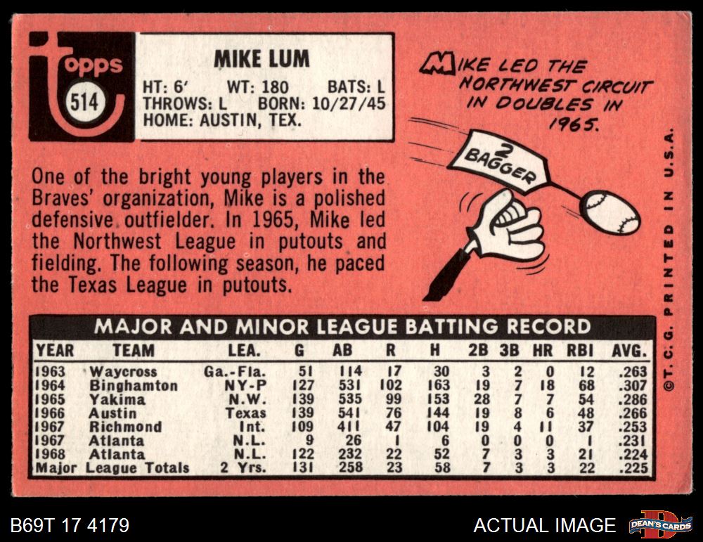 1969 Topps #514 Mike Lum 4 - VG/EX