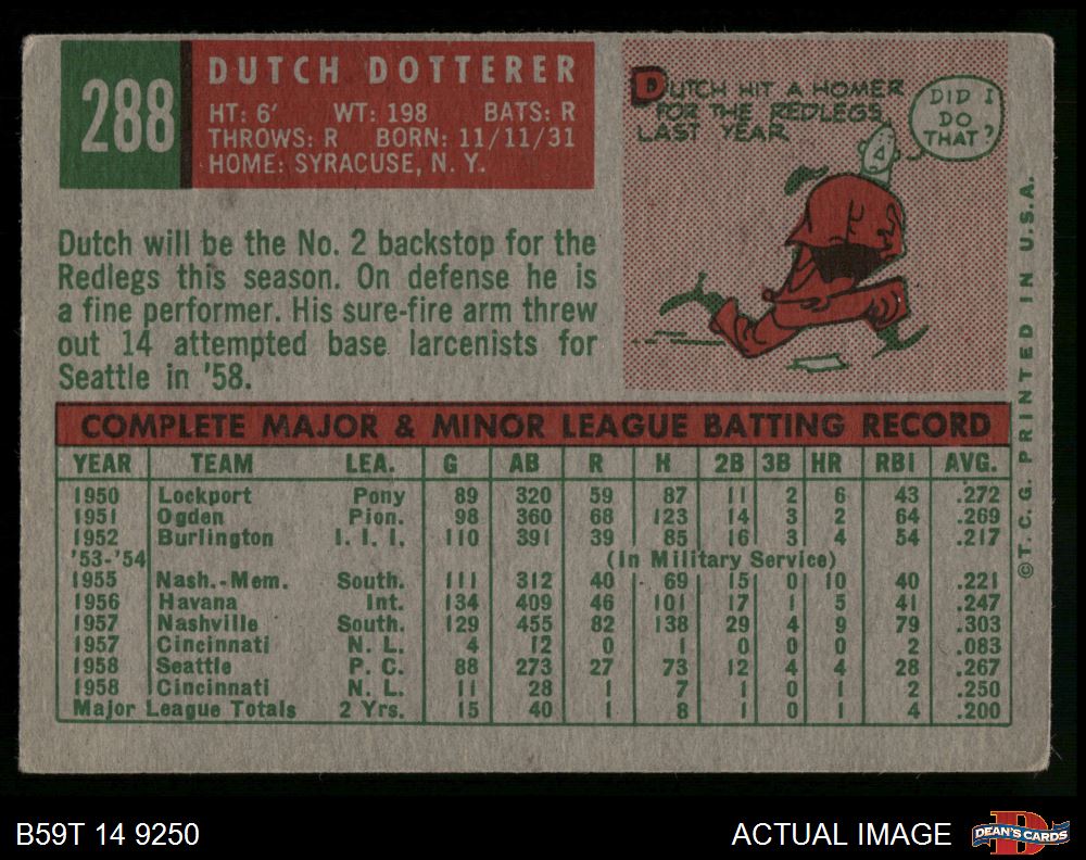 1959 Topps #288 Dutch Dotterer Front Thumbnail