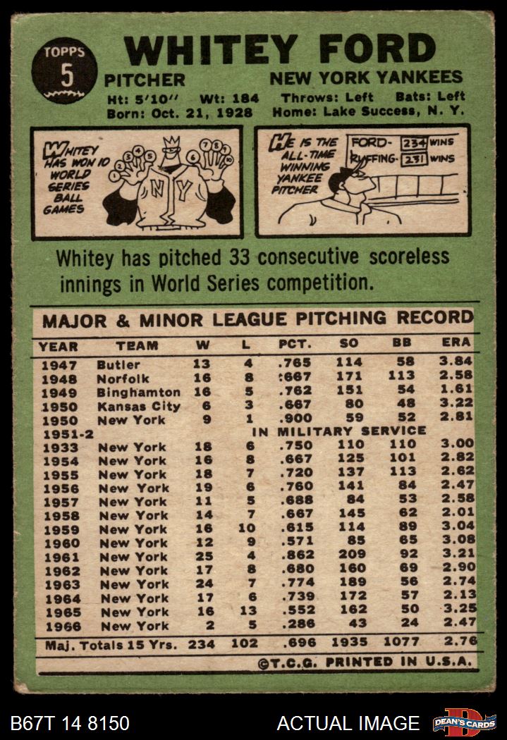 1967 Topps #5 Reads 1933 Stats, Instead of 1953 Whitey Ford 1 - POOR
