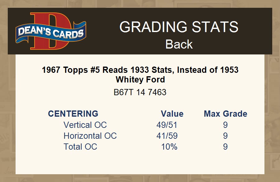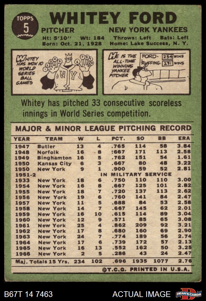 1967 Topps #5 Reads 1933 Stats, Instead of 1953 Whitey Ford 2.5 - GD+