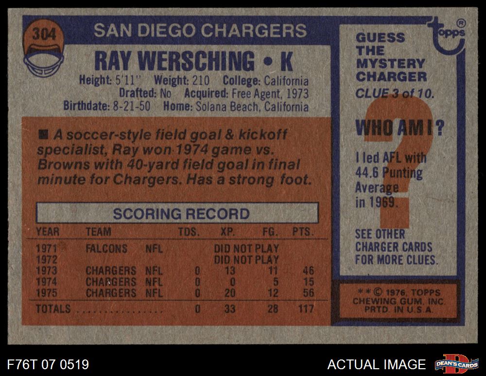 1976 Topps #304 Ray Wersching 6 - EX/MT