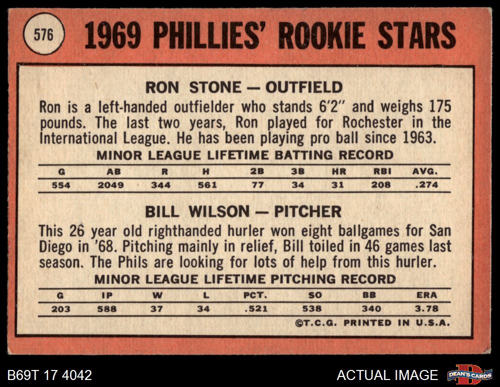 1969 Topps #576 - Ron Stone / Bill Wilson Phillies Rookies 4 - VG/EX