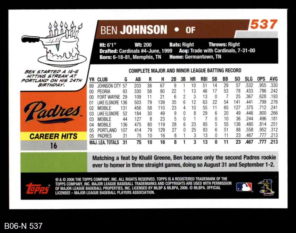 2006 Topps #537 Ben Johnson