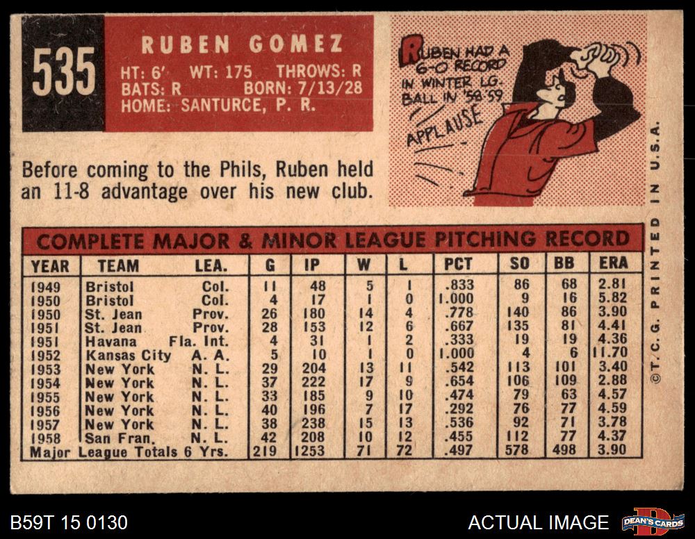 1959 Topps #535 Ruben Gomez 4 - VG/EX