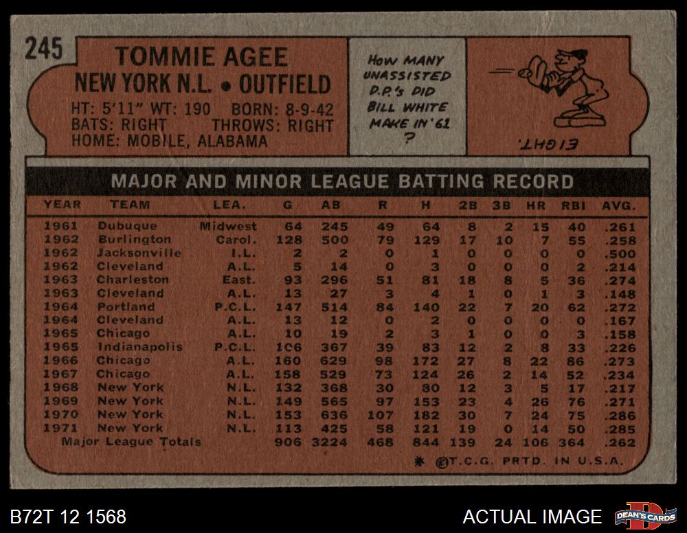 1972 Topps #245 Tommie Agee