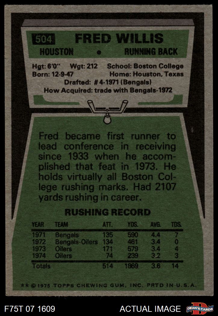 1975 Topps #504 Fred Willis 5.5 - EX+
