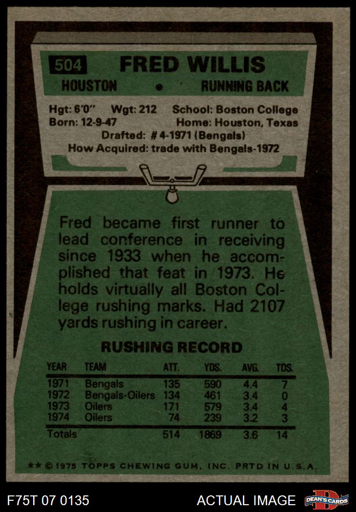 1975 Topps #504 Fred Willis 6 - EX/MT