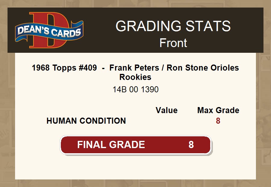 1968 Topps #409 - Frank Peters / Ron Stone Orioles Rookies PSA 8 - NM/MT