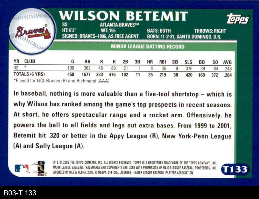 2003 Topps Traded #133 T - Wilson Betemit Prospect 8 - NM/MT