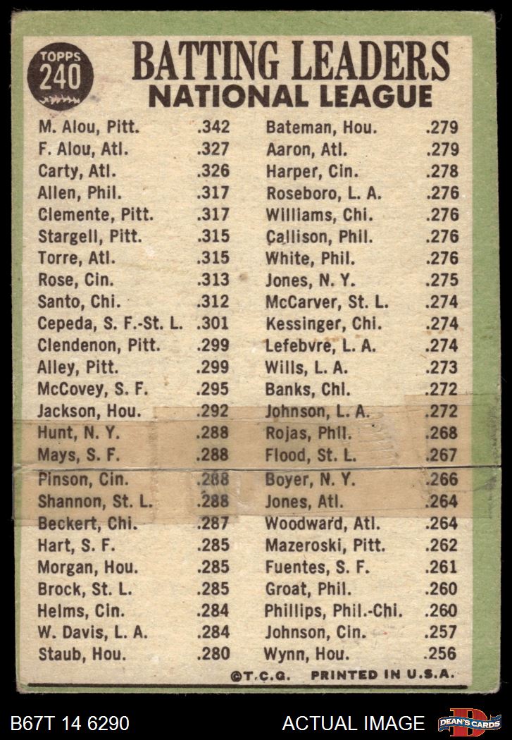 1967 Topps #240 - Felipe Alou / Matty Alou / Rico Carty NL Batting Leaders AUTHENTIC