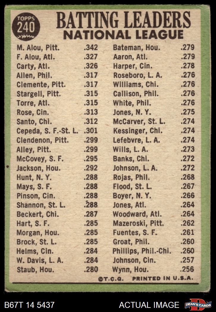 1967 1967 #240 - Felipe Alou / Matty Alou / Rico Carty NL Batting Leaders 1 - POOR
